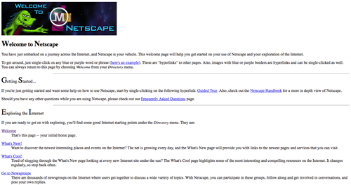 Some of you young scamps might not remember Netscape. It was one of the original internet browsers long before Chrome was a twinkle in Google’s eye. Indeed the ‘Welcome to Netscape’ dates all the way back to 1994 and explains how ‘hyperlinks’ work…we know grampa!